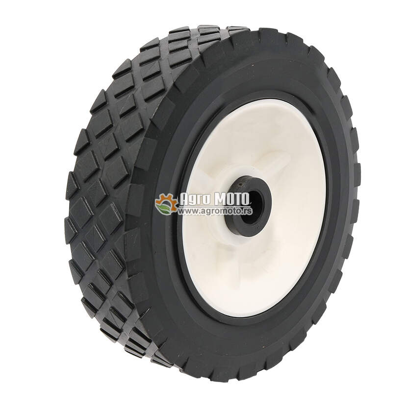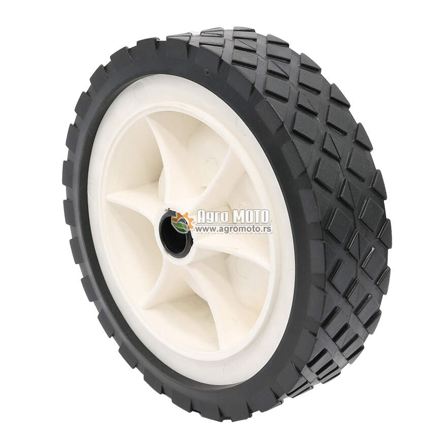 Točak kosilice 150x14x35 mm predstavlja visokokvalitetni rezervni deo sa kombinovanom konstrukcijom od ojačanog polimera i gumenog gazeće sloja, dizajniran za zamenu habajućih točkova na travnatim kosilicama srednjih i većih dimenzija. Ovaj univerzalni točak ima spoljašnji prečnik od 150 mm, unutrašnji prečnik osovine od 14 mm i širinu od 35 mm, što ga čini idealnim za kosilice sa snažnijim motorima i širim radnim zahvatom. Posebnost ovog točka je izdržljiv gumeni gazeći sloj sa dijamantskim profilom koji obezbeđuje izvrsnu trakciju i prianjanje na različitim površinama, uključujući vlažnu travu, kose terene i neravne površine.