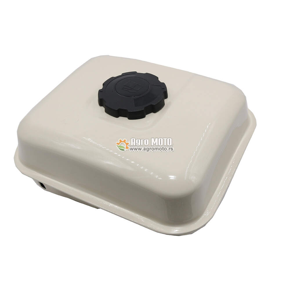 Kapacitet: 3,1 litar | Materijal: čelični lim | Debljina zidova: 0,8-1,2 mm | Dimenzije: 21 cm (dužina) x 23 cm (širina) x 15 cm (visina) | Težina praznog rezervoara: 800-1.000 grama | Broj montažnih tačaka: 3 (jedan vijak pozadi, dve matice napred) | Prečnik izlaznog priključka: 14 ili 16 mm | Tip filtera: sitasti, metalna ili najlonska mreža | Ventilacija čepa: jednosmerni ventil | Materijal čepa: metal ili ojačana plastika sa gumenim dihtungom | Zaštita površine: višeslojna boja ili lak | Otpornost na temperaturu: -20°C do +80°C | Kompatibilnost: Honda GX 140, GX 160, GX 200 | Vreme pražnjenja pri punom opterećenju: 1,5-2,5 sata zavisno od modela motora.