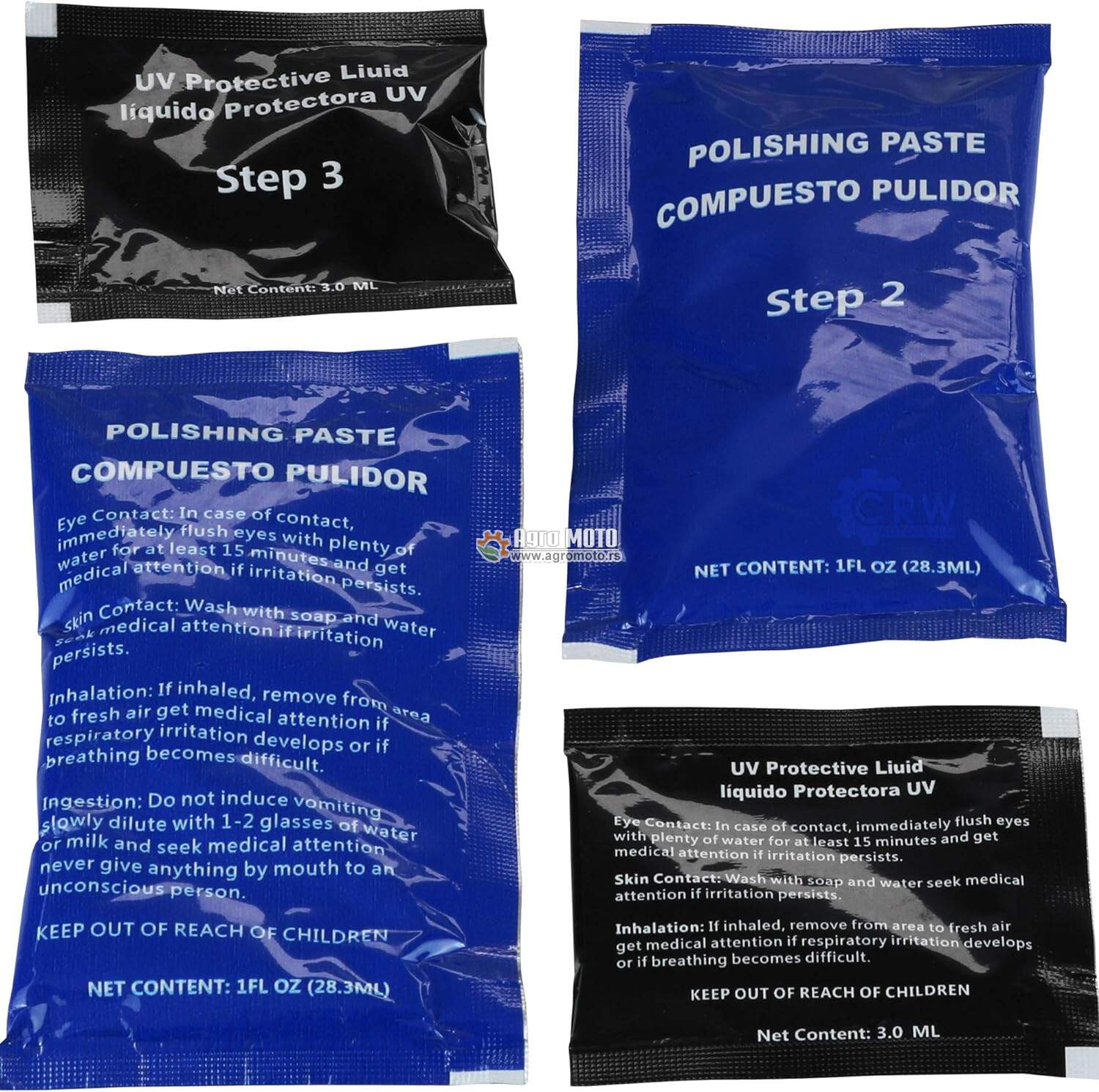 Komplet sadrži sve što vam je potrebno za temeljno poliranje i zaštitu farova: