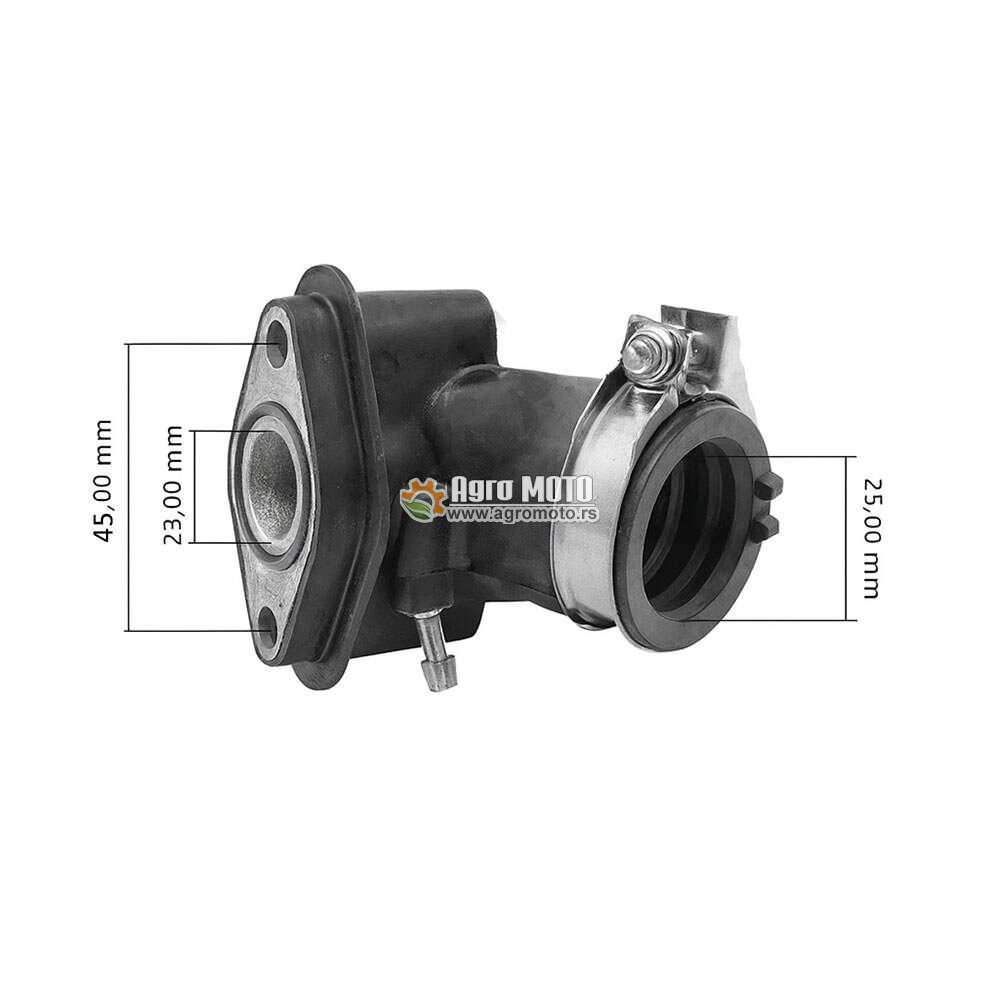 Grlo karburatora GY6 50cc 4T predstavlja ključnu komponentu usisnog sistema koja povezuje karburator sa glavom motora i omogućava pravilan protok smeše goriva i vazduha. Ova usisna grana za kineske skutere sa četvorotaktnim motorom zapremine 50 kubika obezbeđuje optimalno zaptivanje i pouzdan rad pogonskog agregata. Ukoliko primetite curenje vazduha, nestabilan rad motora u leru ili otežano paljenje, verovatno je grlo karburatora oštećeno ili istrošeno i potrebna je zamena ovom kvalitetnom zamenskom komponentom.
