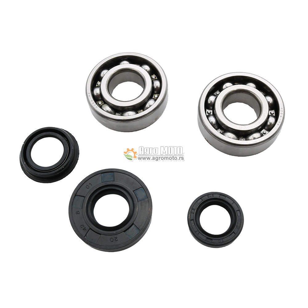 Komplet ležajeva i semeringa za radilicu Minarelli Yamaha CPI Keeway 2T 50cc uključuje sledeće:
