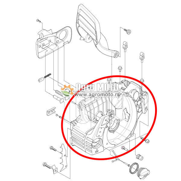 Kućište motora testere Husqvarna 445, Husqvarna 450, Husqvarna 445e, Husqvarna 450e, Husqvarna 445e II, Husqvarna 450e II, Jonsered 2245, Jonsered 2250