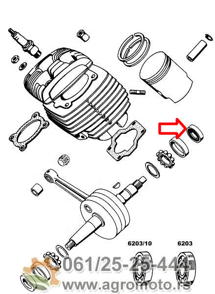 - Održavanje podmazivanja - zadržava dvotaktno ulje unutar kartera što garantuje pravilan rad sistema podmazivanja ležajeva radilice
