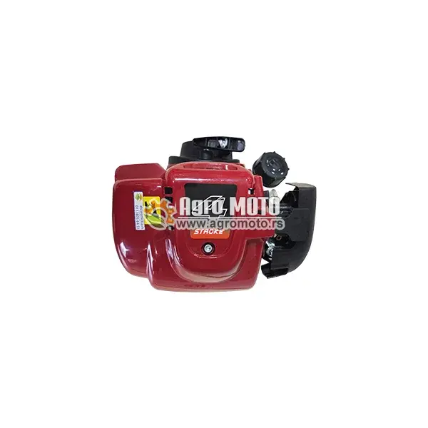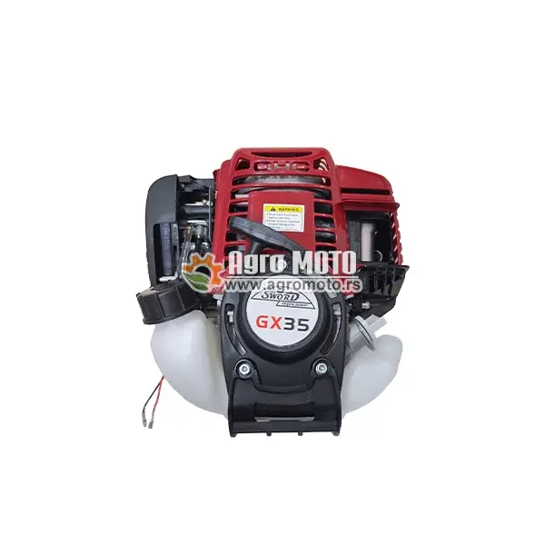 Četvorotaktni benzinski motor GX35 zapremine 35 cm³ i snage 1,3 KS (1,0 kW) je kompaktni, lagani i tihi zamjenski motor za trimere, motorne kose, prskalice i mini kultivatore koji koriste originalni Honda GX35 motor ili kompatibilne klonove. Za razliku od klasičnih dvotaktnih motora koji zahtevaju mešanje ulja i benzina, ovaj 4-taktni motor za trimer radi na čistom bezolovnom benzinu – bez mešanja, bez komplikacija pri punjenju. Sistem podmazivanja je potpuno odvojen: motorsko ulje se odvojeno puni u rezervoar kapaciteta 0,1 litar, a motor brine o svemu ostalom. Rezultat je tiši, ekonomičniji i ekološki prihvatljiviji rad u poređenju sa dvotaktnim motorima iste snage – prema podacima Honda, potrošnja goriva je do 50% niža u odnosu na dvotaktni motor iste klase. Klon Honda GX35 koji nudimo identičan je po svim gabaritnim i montažnim dimenzijama originalnom Honda GX35 motoru, što ga čini direktnom zamenom na svim uređajima koji koriste taj motor.