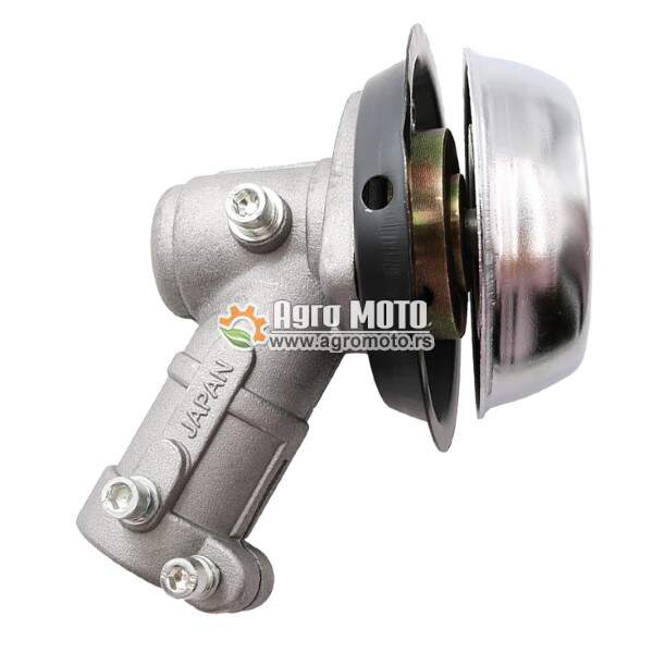 Ovaj sklop deluje kao kompletna prenosna glava za trimer koja obezbeđuje čvrsto povezivanje kardanske osovine, nosača zaštitnika i same glave trimera. U unutrašnjosti glave kardana nalazi se par zupčanika koji prilagođavaju ugao i prenos snage, pa glave za trimer rade stabilno čak i na visokim obrtajima. Prihvat cevi prečnika 26 mm i četvrtkasti završetak kardana čine ovaj nosač glave trimera idealnim izborom kada je potrebno zameniti originalni deo na kineskom ili univerzalnom modelu.