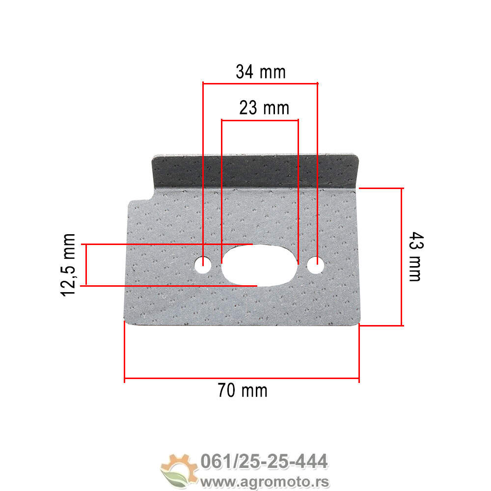 Napomena: Otvor na ovom dihtungu je manji nego kod modela od 43cc/52cc. Pre kupovine proverite oblik izduvnog kanala na vašem cilindru.