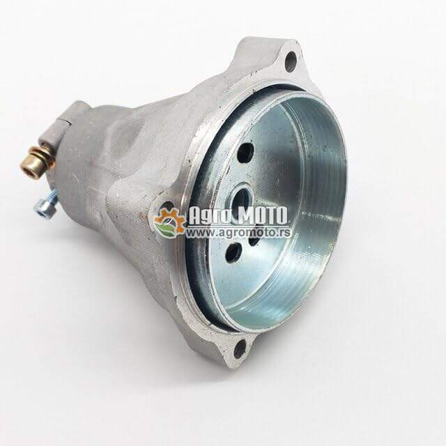 Kućište kvačila sa korpom za trimer (zvono kvačila) je ključna komponenta prenosnog sistema koja povezuje motor sa kardanskom osovinom. Ovaj model je specifično dizajniran za robusne motorne kose sa aluminijumskom cevi prečnika 28 mm i kardanom sa 9 nuteva (zuba), što je standard za većinu "Heavy Duty" trimera na tržištu.