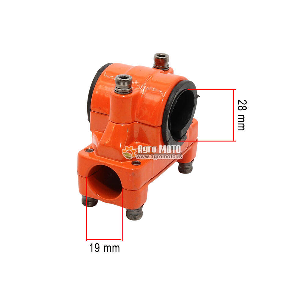 Nosač rukohvata Thorp za trimere Villager BC 1250 i BC 1900 je specijalno dizajniran da se koristi sa kardanskom cevi spoljnog prečnika od 28 mm i cevi drške ili rukohvata od 19 mm. Ovaj nosač rukohvata pruža sigurno i stabilno pričvršćivanje rukohvata na trimere, obezbeđujući udobnost i kontrolu tokom rada.