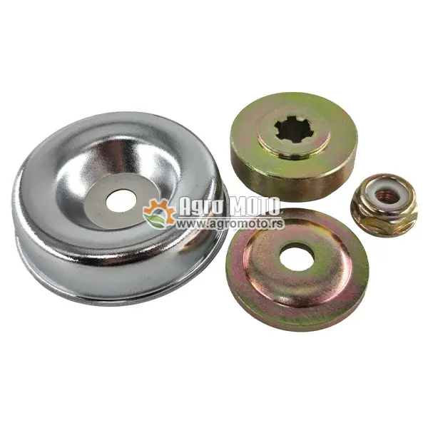 Ovaj komplet podloški noža obuhvata sve elemente potrebne za pravilnu i bezbednu montažu metalnog noža na osovinu trimera. Gornja podloška se postavlja između kućišta gearboxa i noža, dok donja podloška ide ispod noža, a zajedno sa kapom noža i šrafom M10x1,25 sa kontra navojem formiraju čvrstu i sigurnu vezu koja ne popušta ni pri najintenzivnijem radu. Svi elementi kompleta su od čelika sa cink premazom koji štiti od korozije.